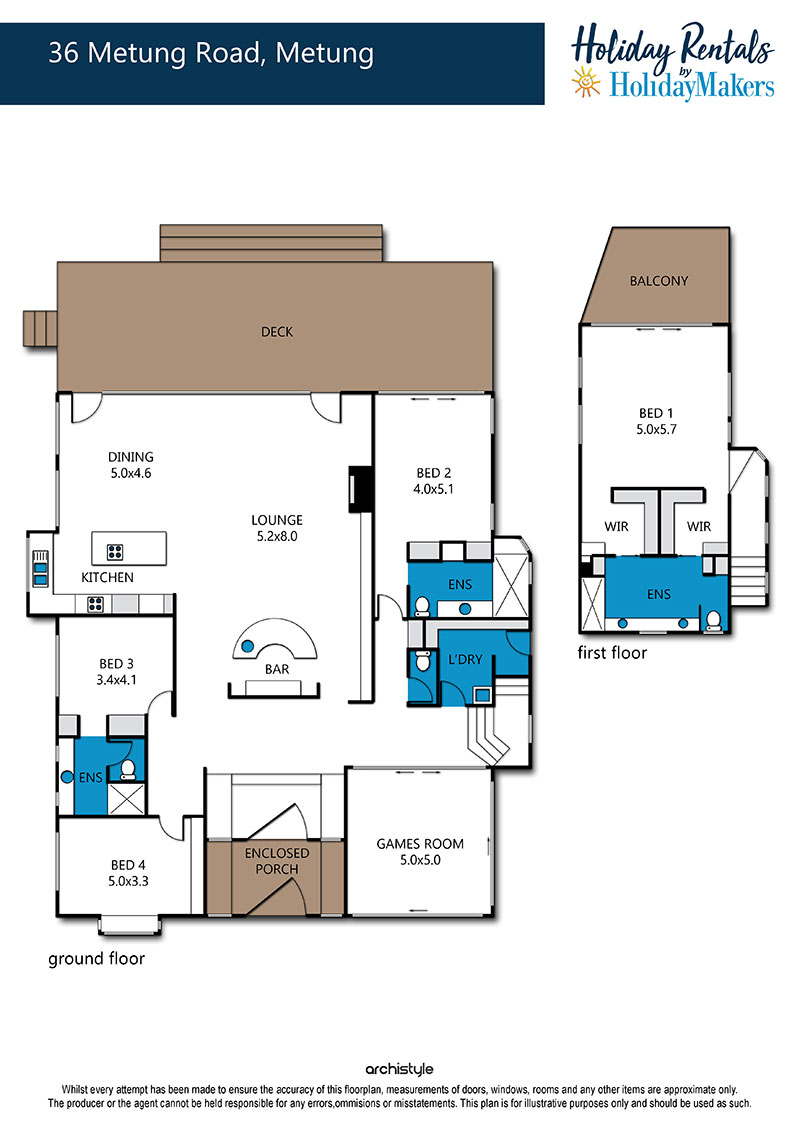 Bedroom 1 (upstairs): 1 x King Bed